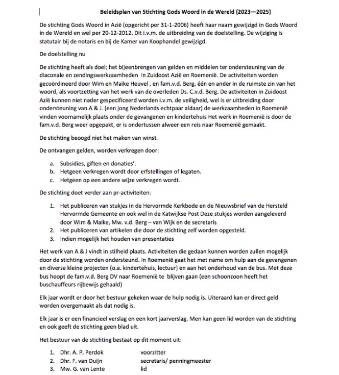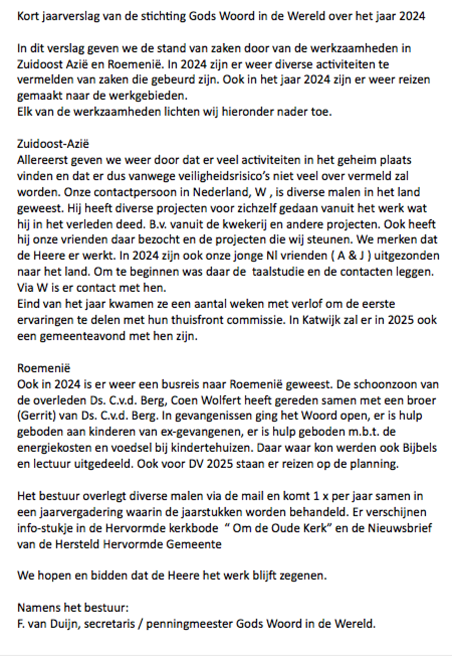 Wij danken u voor uw gift! Zo kan het werk van GwidW voortgang vinden!